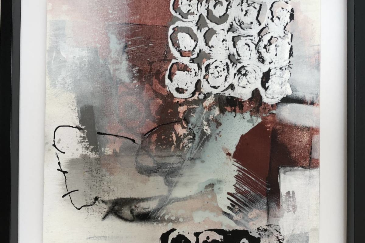 Die angewandten Techniken reichen von übereinander angebrachten Flächen bis hin zu Siebdruck und Kalligraphie. Als Untergrund werden Weinfilterplatten, Holz, Glas, Leinwände usw. verwendet. Kleine, aber feine Werke die dem Betrachter sofort ins Auge fallen.